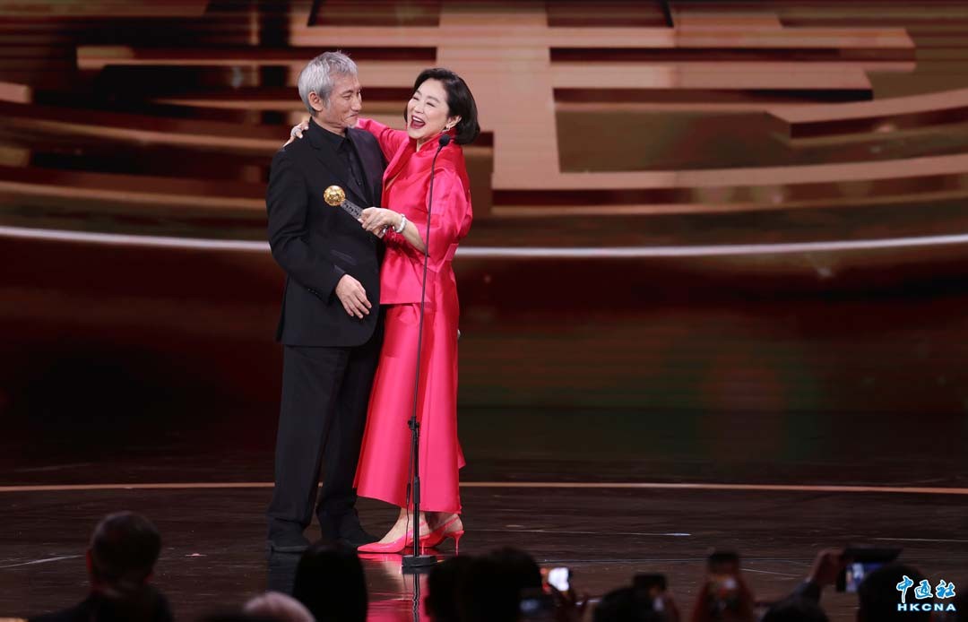 2024年6月28日,“世界因你而美麗——2023-2024影響世界華人盛典”在香港舉行。是次盛典由鳳凰衛視集團聯合海內外多家華語媒體機構發起,共同推舉及表彰在不同領域成就卓越、具有世界影響力的傑出華人典範。圖為導演徐克(左)為林青霞頒獎。(香港中通社記者 曹文毓攝)