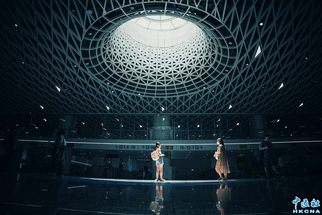 有"深圳之眼"之稱的深圳崗廈北地鐵樞紐,被譽為深圳最美地鐵站,極具未來感的大穹頂,在設計上採用了費馬螺旋、無數極具科技感的線條從四面匯聚於"深圳之眼",給人帶來強烈的視覺衝擊感,不但吸引深圳市民,更有不少香港人慕名前往打卡。(蔡志東 攝)