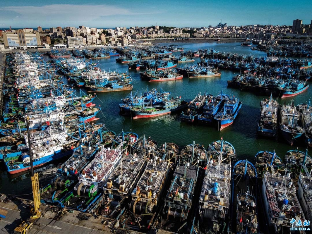 正值伏季休漁期,停泊在福建省祥芝中心漁港的幾百艘大型漁船蓄勢待發,靜候著新一輪的耕海牧漁徵程,碧海、天空、漁船形成一道獨特的風景線。圖為2024年7月4日拍攝的漁港。 (香港中通社記者 許其皓攝)