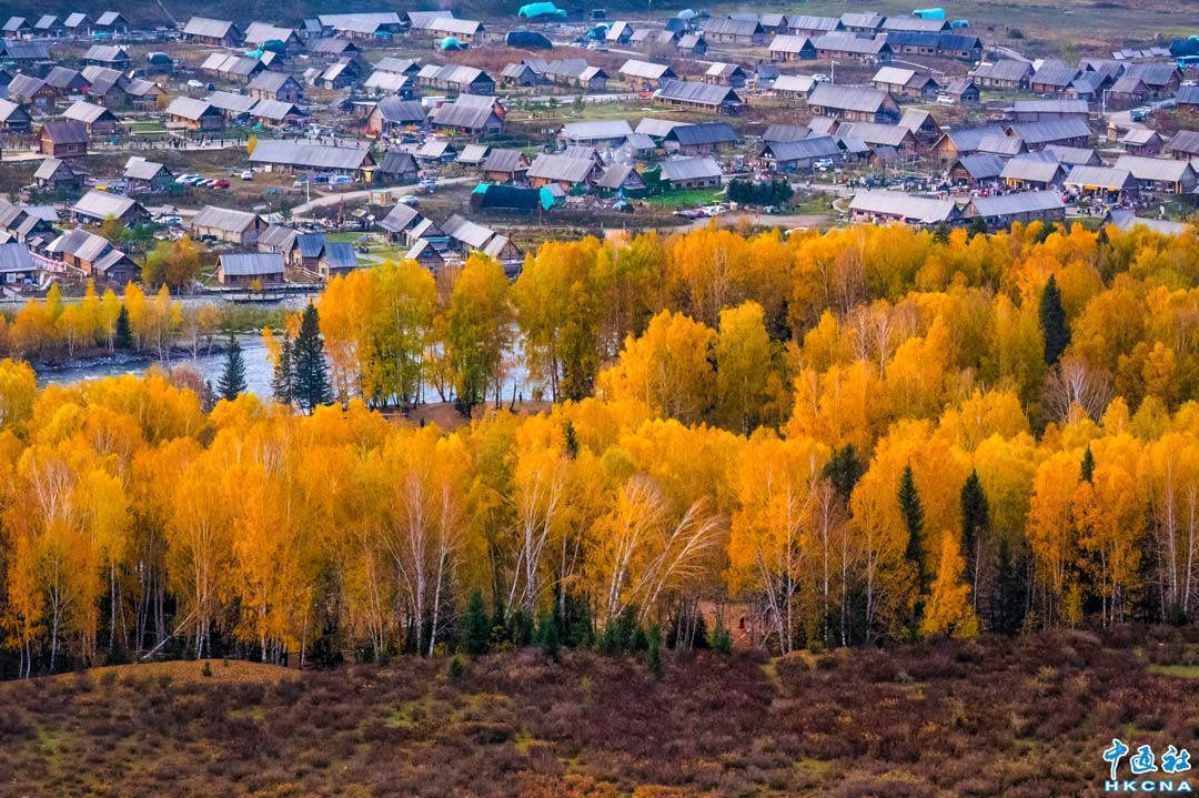 座落在新疆北部深山的禾木村,秋天來臨時,獨具特色的圖瓦族木屋被夢幻的薄霧和大片金黃的樺樹點綴,如詩如畫的美景,猶如仙境。童話世界般的禾木村,2005年被《華夏地理》雜誌評選為中國最美鄉村之一。(蔡志東 攝)