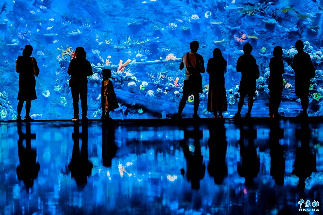 深圳小梅沙海洋世界2024年10月1日起試運營,佔地面積6.02萬平方米,建築面積13.25萬平方米,水體量共計4萬立方米。小梅沙海洋世界以“探索海洋生命、感受海洋奇幻、科普海洋知識”為主題,將傳統生物展示和現代高科技多媒體互動技術相結合,突出科技感、娛樂性、互動性,是一個集海洋生物展示、科普教育、親子陪伴、體驗互動為一體的現代高科技海洋文化體驗場館。 (香港中通社記者 許其皓攝)