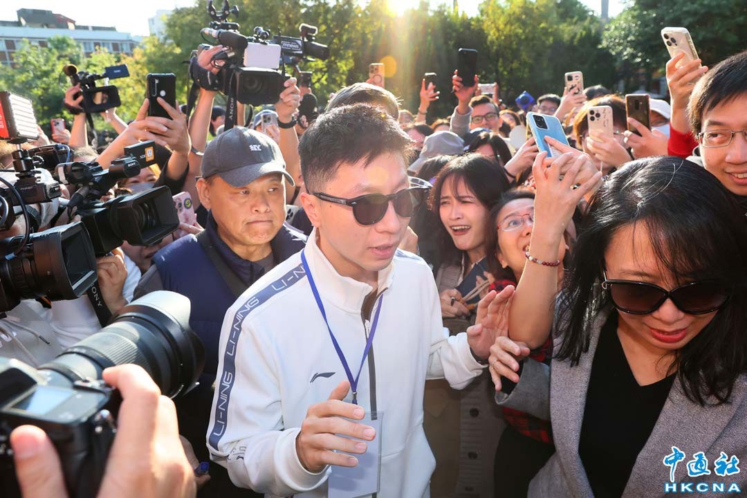 2024年11月28日,奧運乒乓球六金選手馬龍随大陸高校師生團參訪台灣台北孔廟,受到大批粉絲夾道歡迎。馬龍宛如走星光大道般,向粉絲們揮手致意。 香港中通社圖片