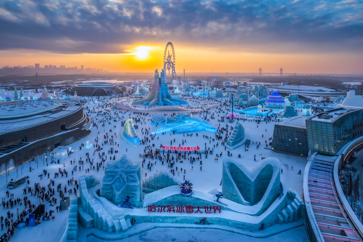 哈爾濱第26屆“哈爾濱冰雪大世界”2024年12月21日正式開園,迎接遊客。今年園區以“冰雪同夢 亞洲同心”為主題,佔地面積達100萬平方米,總用冰用雪量約30萬立方米,園區設計和建設充分融入亞冬會元素,打造一座更加氣勢恢宏、美輪美奐的冰雪主題樂園。 香港中通社圖片