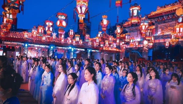 2024年9月17日是中秋節,不少香港市民前往黃大仙祠賞燈、欣賞演出。 (香港中通社記者 曹文毓攝)