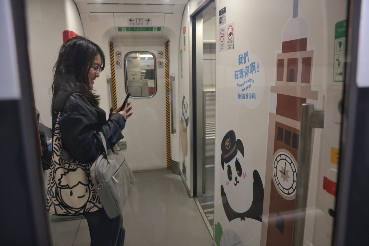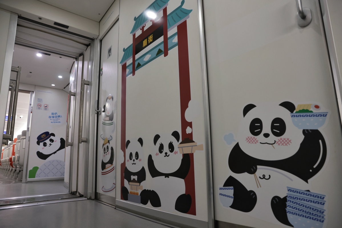“香港熊貓列車”大熊貓圖案遍布車廂內外