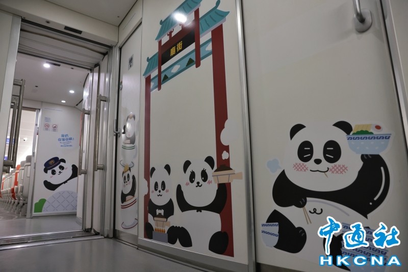 (香港中通社圖片) “香港熊貓專列”由動感號改造,是香港唯一在車身內外都能找到大熊貓身影的列車。生動可愛的大熊貓圖案遍布車內、車外,不單化身高鐵司機,更擔任宣傳大使穿梭香港多個旅遊地標,為乘搭列車訪港的旅客推介香港景點和特色美食。 早前,港鐵也推出3列大熊貓主題列車,由去年12月19日起至今年2月中旬,行駛於南港島線及機場快線。車廂內貼滿大熊貓裝飾,牠們造型不一,有的是鯊魚造型,有的在吃竹葉,也有具港鐵特色的車長造型。 熊貓專列時間表 期間限定:2025年1月11日(星期六)至4月4日(星期五) 行走路綫:香港西九龍站往來廣州南站、深圳北站及福田站的指定班次 行走班次:香港熊貓專列逢星期六、日及大年初一(1月29日)於指定路綫行駛,其餘日子將隨機行駛 購票方法:乘客按照熊貓專列的時間表所示的車次,透過12306綫上票務平台、車站售票機、車站票務櫃位及指定代理購買。(完) 【編輯:劉春】