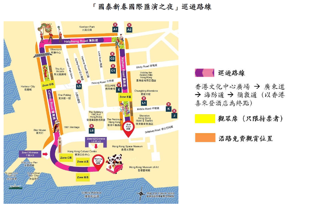 當晚,巡遊隊伍將從香港文化中心廣場出發,途經廣東道、海防道及彌敦道,以香港喜來登酒店外為終點。匯演開始前約下午6時,將有多隊本地表演團體沿巡遊路線帶來雜耍、魔術、舞蹈及街頭音樂等富有嘉年華特色的表演,率先炒熱現場氣氛。 香港農曆新年有多項盛事進行,農曆新年煙花匯演將於大年初二(1月30日)在維多利亞港上演,璀璨奪目的煙花在夜空綻放,與市民遊客一同慶祝踏入蛇年。此外,香港各區都有年宵市場,有小吃攤檔售賣傳統賀年美食,亦有乾貨攤位售賣特色新年裝飾、本地手工藝品,增添熱鬧氛圍。(完) 【編輯:王瑤】