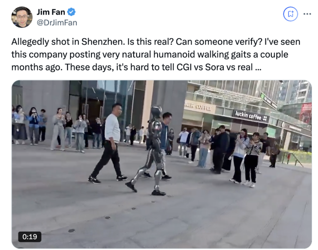 英偉達科學家Jim Fan看了都有點懷疑自己的眼睛:這到底是真實的還是Sora合成啊…… 根據眾擎官方的顯示,SE01已經可以在實驗室環境當中像真人一樣行走,步態姿勢十分接近。在官方曬出的視頻里,它還能做蹲起、俯臥撐,機身採用了航空級鋁材。這台通用智能體身高高達170cm,體重約為55kg,SE01全身擁有32個自由度,常態下的行走速度是2米每秒(7.2公里每小時),可實現上下蹲、俯臥撐、轉圈走、抓取、跑跳等人類動作,運動性能媲美國際運動健將。