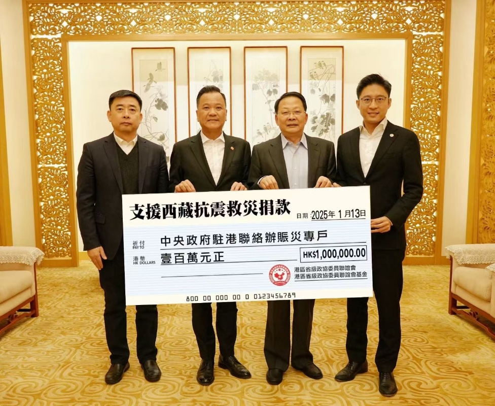 尹宗華副主任感謝聯誼會此次為定日縣地震災區捐款的善舉,充分展現了港區政協委員的擔當,體現了香港同胞血濃於水的深厚情誼。他表示將第一時間把捐款轉到災區,支援救災及重建工作。 蘇清棟主席、霍啟山會長表示,聯誼會在得知西藏地震消息後第一時間組織號召全體會員向受災群眾捐款捐物,希望這100萬港元捐款能為災區同胞雪中送炭。衷心祝願西藏定日縣地震受災民眾能夠早日走出陰霾、重建家園。 當日,香港中華聯誼會亦通過中央政府駐港聯絡辦捐款100萬港元支援西藏定日抗震救災,並表達對災區同胞的誠摯慰問,以及對全力參與救災的政府部門、部隊和前線人員的崇高敬意。 香港中華聯誼會表示,香港同胞與西藏定日人民血脈相連,聯誼會希望通過捐款為災區同胞打氣,為救災及重建工作略盡綿力。 尹宗華表示,西藏定日發生地震災情後,香港中華聯誼會迅速捐款賑濟,充分展現“一方有難、八方支援”的大義善舉和“血濃於水、守望相助”的同胞情誼。中央政府駐港聯絡辦將第一時間把捐款轉交災區,支援救災及重建工作。 港區婦聯代表聯誼會及港區婦聯基金亦及時響應,積極發動籌款,短短48小時內已迅速籌募得803333.33港元的愛心善款,希望能及早幫助災區同胞,為抗震救災及災後重建工作盡綿薄之力。並附上致西藏自治區婦女聯合會的慰問信,向受災同胞致以深切慰問。 尹宗華代為接收支票,並向港區婦聯表示衷心感謝。他表示,港區婦聯積極響應,迅速匯聚香港婦女界的力量,在短時間內籌集愛心善款,令人敬佩和感動。 香港工聯會亦心繫受災同胞,本著“一方有難 八方支援”的精神,立即從工聯會救災慈善基金撥出10萬港元善款援助災區,並第一時間發起籌款行動。 工聯會會長吳秋北、副會長曾志文13日將善款支票遞交給中聯辦,由中聯辦社工部副部長吳小玔代表接收,再將善款轉交西藏政府部門作為賑災之用。 吳秋北表示,災區受損情況嚴重,災民亟待救援,當前正值隆冬時節,低溫嚴寒,禦寒保暖成為這次抗震救災工作的重中之重。工聯會立即撥出善款,希望能盡一點微薄心意,幫助災民度過難關,讓他們感受到香港同胞的溫暖和關愛。 工聯會同時發起“祝願西藏同胞平安”捐款行動,香港市民可透過工聯APP、“香港工會聯合會救災慈善基金”和轉數快(FPS)等途徑捐款。工聯會呼籲香港各界伸出援手,為受災同胞提供支持和幫助,為他們帶來希望和溫暖。 此外,香港自由黨亦捐款50萬港元;香港藝人惠英紅則通過韓紅愛心慈善基金會捐款。 韓紅愛心慈善基金會在社交平台發文表示,截至2025年1月8日20時,韓紅基金會收到74位文體工作者捐贈的善款,總額1320萬元人民幣。捐款名單星光熠熠,值得注意的是,當中包括香港藝人惠英紅等。(完) 【編輯:劉春】