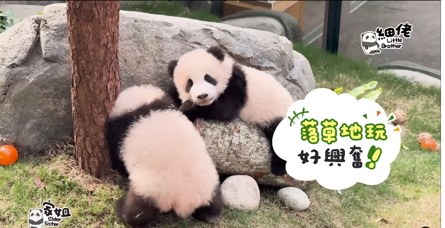 (截圖自海洋公園大熊貓專頁IG) 海洋公園15日在社交平台上傳片段,顯示大熊貓龍鳳胎離開飼養室,來到有樹木、石頭及草地的“大自然”。一開始趴在樹木上的是弟弟,看起來十分悠閒舒適,其後姐姐也想趴上去,遂手腳並用扒拉弟弟,最後牠們雙雙跌至草地上,玩得不亦樂乎! 園方稱,大熊貓龍鳳胎玩滑梯及木馬均已經得心應手,代表牠們已經準備好,在有樹、石頭、草地及斜坡的環境探險啦! 行政長官李家超14日表示,2025年香港好事連連,包括在香港出世的大熊貓龍鳳胎約半歲了,2月就可以與公眾見面。 因此,龍鳳胎的活動範圍由飼養室轉至疑似供公眾觀看的展覽室活動,或是幫龍鳳胎適應環境、為2月見公眾做好準備。 港產大熊貓龍鳳胎去年8月15日出世,體重剛出生時均僅有100多克。出生約5個月後,龍鳳胎體重已達約7公斤,並換上新牙。香港海洋公園大熊貓專頁早前也在社交平台更新動態,顯示港產大熊貓龍鳳胎中的姐姐正努力學習爬行,步伐日漸熟練。(完) 【編輯:劉春】