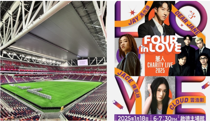 香港新聞網1月18日電 香港啟德主場館第一個慈善演唱會—“FOUR in LOVE 萬人 CHARITY LIVE 2025”(FOUR in LOVE)於今日(18日)舉行。 今次舉辦的演唱會是首場非體育測試,當日將有1.8萬人參加音樂會,場館會做全面安檢,檢查觀眾手袋。今天的演出嘉賓包括 Jay 馮允謙、Dear Jane、Cloud 雲浩影及 JACE 陳凱詠。演唱會將於今晚6時至8時舉行,下午4時起觀眾可陸續入場。演唱會不設劃位,因此提早到場排隊可爭取到較佳觀賞位置。