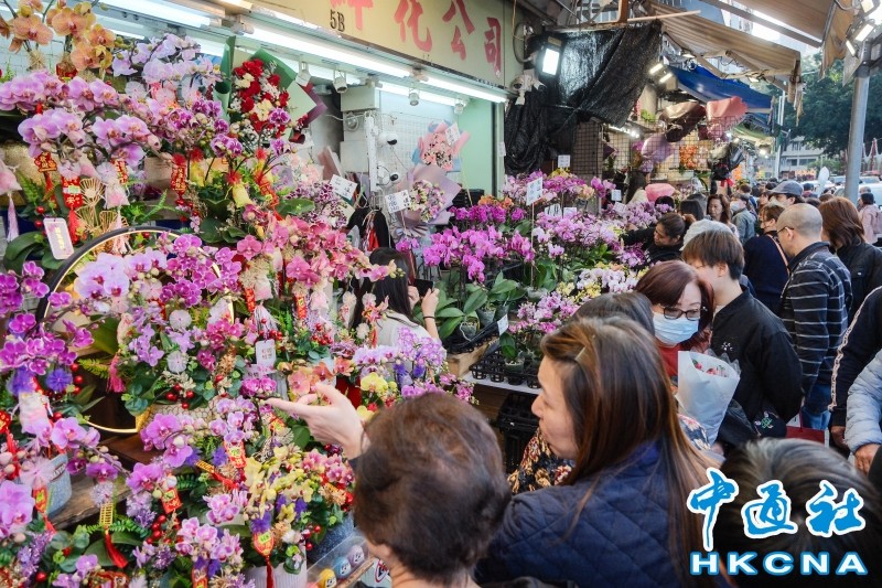 1月18日,農曆新年將至,香港旺角花墟的花店擺滿了琳瑯滿目的鮮花,吸引了大批市民前來選購年花。香港中通社圖片