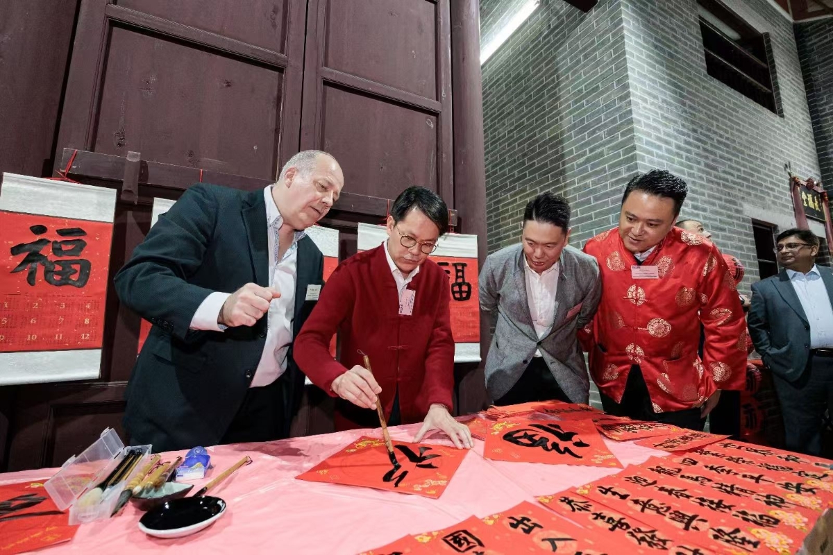 香港新聞網1月24日電 香港民建聯聯絡拓展委員會於1月23日傍晚,於大埔泰亨文氏宗祠舉行“靈蛇獻瑞,共迎新春:盆菜交流盛宴”,藉農曆新年將至的契機,與三十多名駐港外國領事及外國商會代表聯誼,品嚐盆菜,以及親身體驗舞獅、寫揮春等中國傳統文化習俗,加深彼此了解,共渡新春佳節。