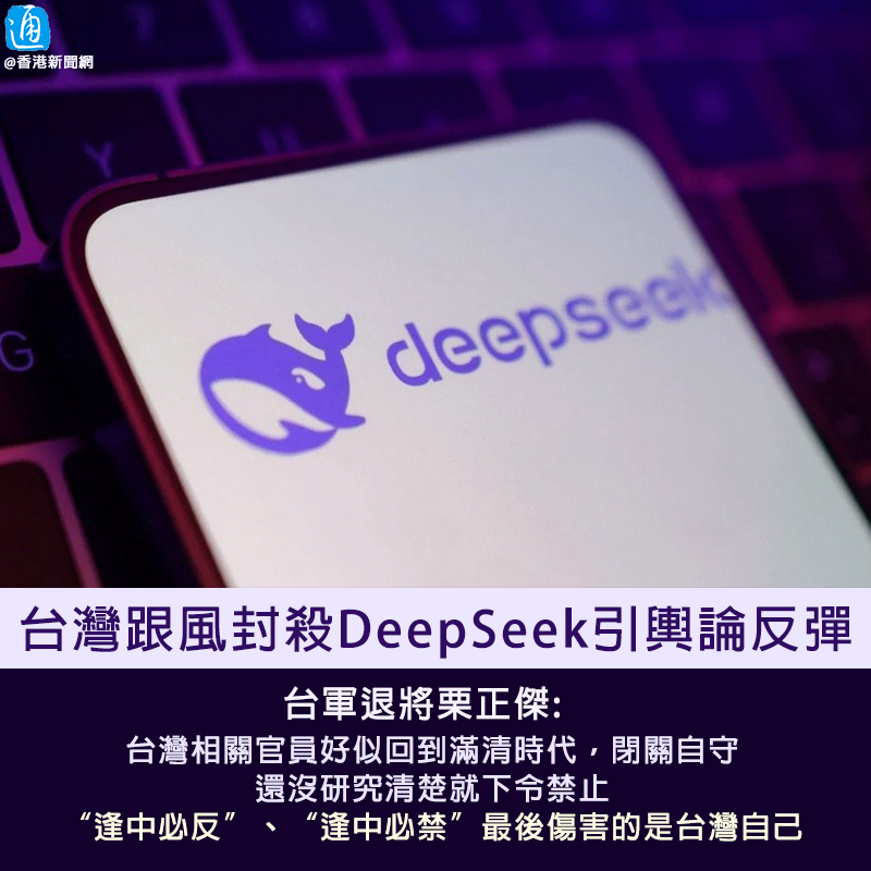 “逢中必禁”?台灣跟風封殺DeepSeek引輿論反彈分享到: