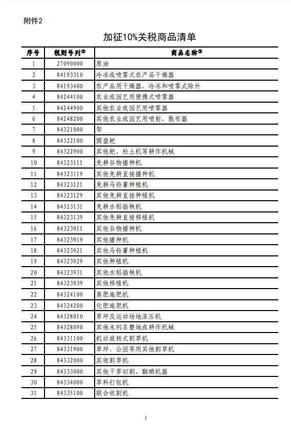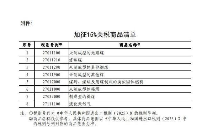 香港新聞網2月4日電 據中國財政部網站,2025年2月1日,美國政府宣布以芬太尼等問題為由對所有中國輸美商品加徵10%關稅。美方單邊加徵關稅的做法嚴重違反世界貿易組織規則,不僅無益於解決自身問題,也對中美正常經貿合作造成破壞。 根據《中華人民共和國關稅法》、《中華人民共和國海關法》、《中華人民共和國對外貿易法》等法律法規和國際法基本原則,經國務院批准,自2025年2月10日起,對原產於美國的部分進口商品加徵關稅。有關事項如下: 一、對煤炭、液化天然氣加徵15%關稅,具體商品範圍見附件1。 二、對原油、農業機械、大排量汽車、皮卡加徵10%關稅,具體商品範圍見附件2。 三、對原產於美國的附件所列進口商品,在現行適用關稅稅率基礎上分別加徵相應關稅,現行保稅、減免稅政策不變,此次加徵的關稅不予減免。(完)