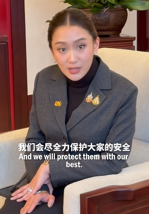泰國總理佩通坦。中國日報網視頻截圖 “中國日報網”微信公眾號7日報道,佩通坦表示,她本人在關注所有遊客安全事宜,以確保每位來泰國的朋友都感到安心。 自5日上午9時起,泰國正式切斷泰國與緬甸邊境的五個對緬供電點供電,以打擊跨境電信詐騙。泰國副總理兼國防部長普坦·威差耶猜6日說,在5日對泰緬邊境相關地區斷電後,根據監測,緬甸一個電詐活動聚集地區的用電量已減少一半,這說明措施已產生影響。關於切斷互聯網連接,普坦表示,已與國家廣播電視和電信委員會進行了商討,將在本月內徹底切斷所有問題網絡連接,並將根據各地區情況對部分必要網絡連接進行降級處理。 6日晚,緬甸國家管理委員會新聞信息組發布消息表示,緬甸政府高度重視、嚴厲打擊網賭電詐等違法犯罪行為。據悉,緬甸方面當天在泰緬邊境將61名被解救的緬甸妙瓦底電詐園區受害者移交給泰國當局。 佩通坦1986年8月出生於泰國曼谷,祖籍中國廣東梅州,其父親、姑母分別為泰國前總理他信和英拉。佩通坦2024年8月當選泰國總理。(完) 【編輯:淩玉輝】