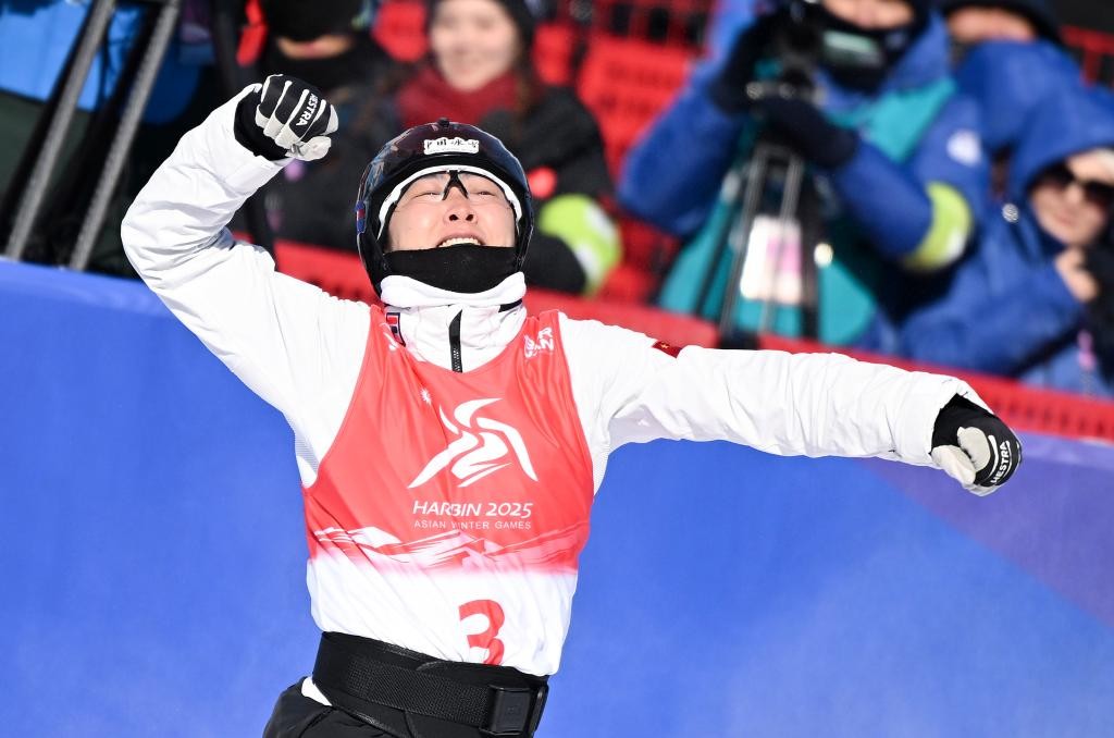 2月9日,徐夢桃慶祝奪冠。新華社記者 夏一方 攝 同為北京冬奧會冠軍,同是34歲的齊廣璞感到了“後浪”的壓力。在男子個人空中技巧比賽中,齊廣璞第一輪跳出124.78分,以第一身份晉級。但第二輪中,最後一個出場的他表現略有瑕疵,最終以119.47分獲得銅牌,他的兩位小隊友、20歲的李心鵬和22歲的楊龍嘯分獲冠亞軍。 雖然輸給了隊友,但齊廣璞說這個結果非常圓滿,因為領獎台上同時昇起了三面五星紅旗,“只有他們(年輕選手)更加優秀,才能證明中國隊這個項目在不斷進步”。 亞布力雪場當日捷報頻傳。在首次亮相亞冬會賽場的滑雪登山項目中,中國隊包攬男女短距離全部六枚獎牌。這個項目已被確定為2026年米蘭-科爾蒂納丹佩佐冬奧會正式比賽項目,男女冠軍布魯爾和次旦玉珍都表示將努力提高自己,全力備戰冬奧會。越野滑雪賽場中國隊包攬女子5公里(自由技術)前四名,巴亞尼·加林奪得金牌,本屆亞冬會越野滑雪已經產生的三金均落入中國隊囊中。值得一提的是,巴亞尼和布魯爾都來自新疆,次旦玉珍來自西藏,中國冬季運動後備力量版圖進一步擴大。