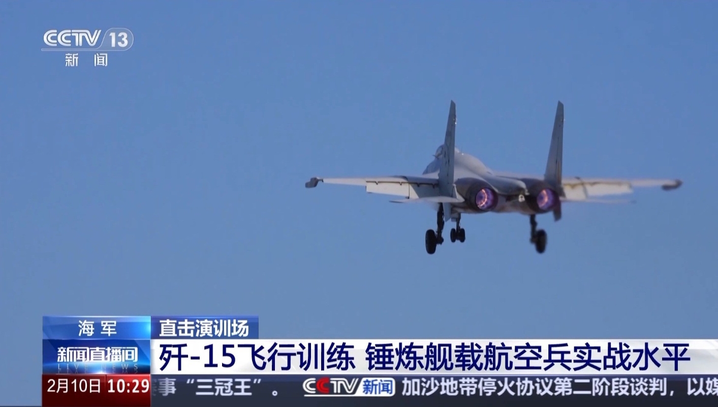 香港中通社2月10日電 中國央視新聞10日公布了中國產艦載戰鬥機殲-15的最新訓練畫面,指殲-15部隊進一步錘煉了作戰本領。