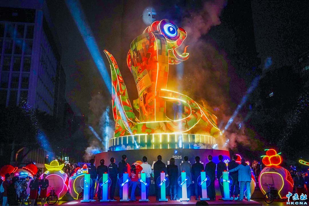 2月2日晚間2025台北燈節正式揭幕,台北市長蔣萬安與現場貴賓及市民朋友共同揭開燈節序幕。今年主燈“福蛇豆豆”高達13尺,擁有圓潤的大眼睛,並搭配每半小時一次的展演,吐舌動作更添趣味,象徵旺盛的生命力。今年燈節規劃四大展區,包含主燈區、西門展區、中華路展區及北門展區,各具特色。 香港中通社圖片