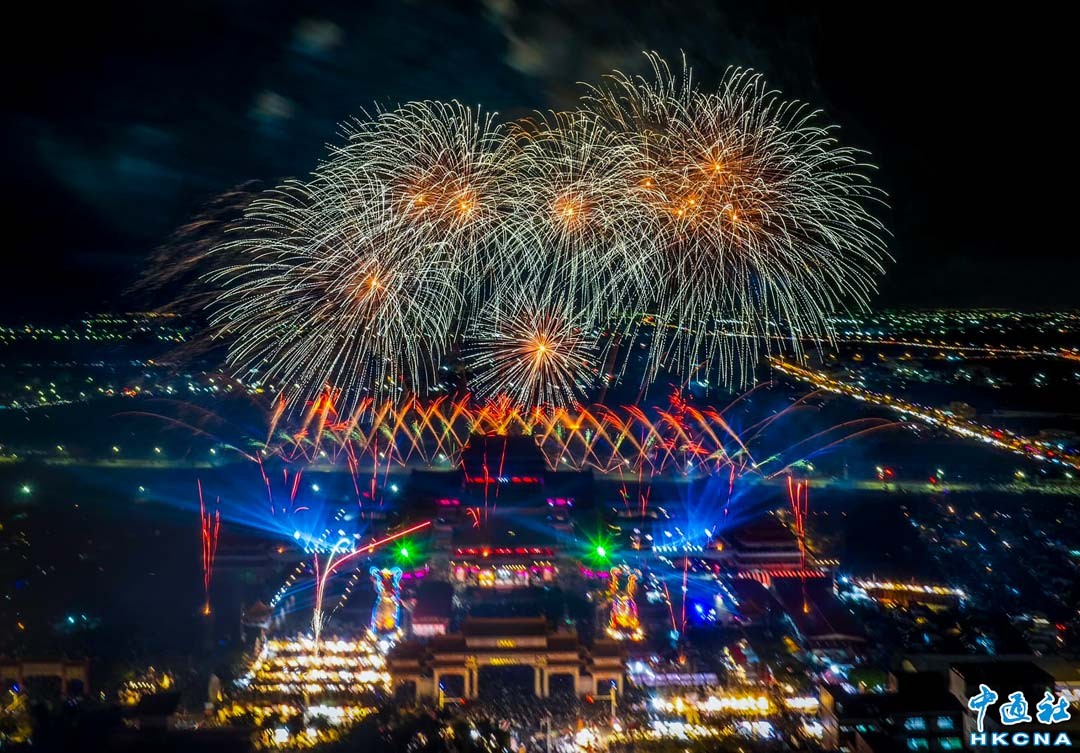 台南正統鹿耳門聖母廟2月8日晚間舉辦搶春牛暨高空煙火秀,雖冷氣團過境,超過10萬人不畏寒流,一舉湧入台南市安南區土城部落周邊,欣賞環廟式煙火與體驗沖蜂炮刺激感,2025年由500架無人機表演打頭陣,煙火秀將土城夜空點綴的璀璨亮麗。 香港中通社圖片