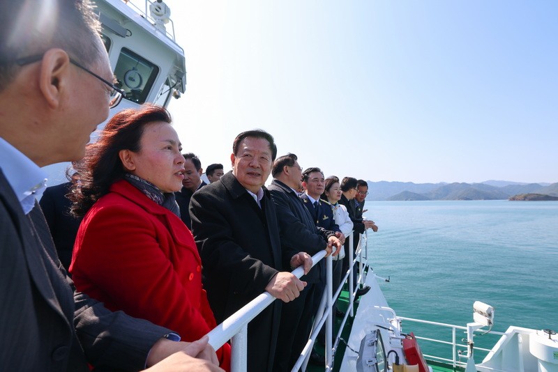 10日上午,夏寶龍先在鹽田國際集裝箱碼頭展廳聽取鹽田港發展情況介紹,并聽取香港特區政府運輸及物流局局長陳美寶介紹香港港口發展情況和廣東省交通運輸廳負責人介紹大灣區港口協同發展情況。之後,夏寶龍乘船考察鹽田港區。