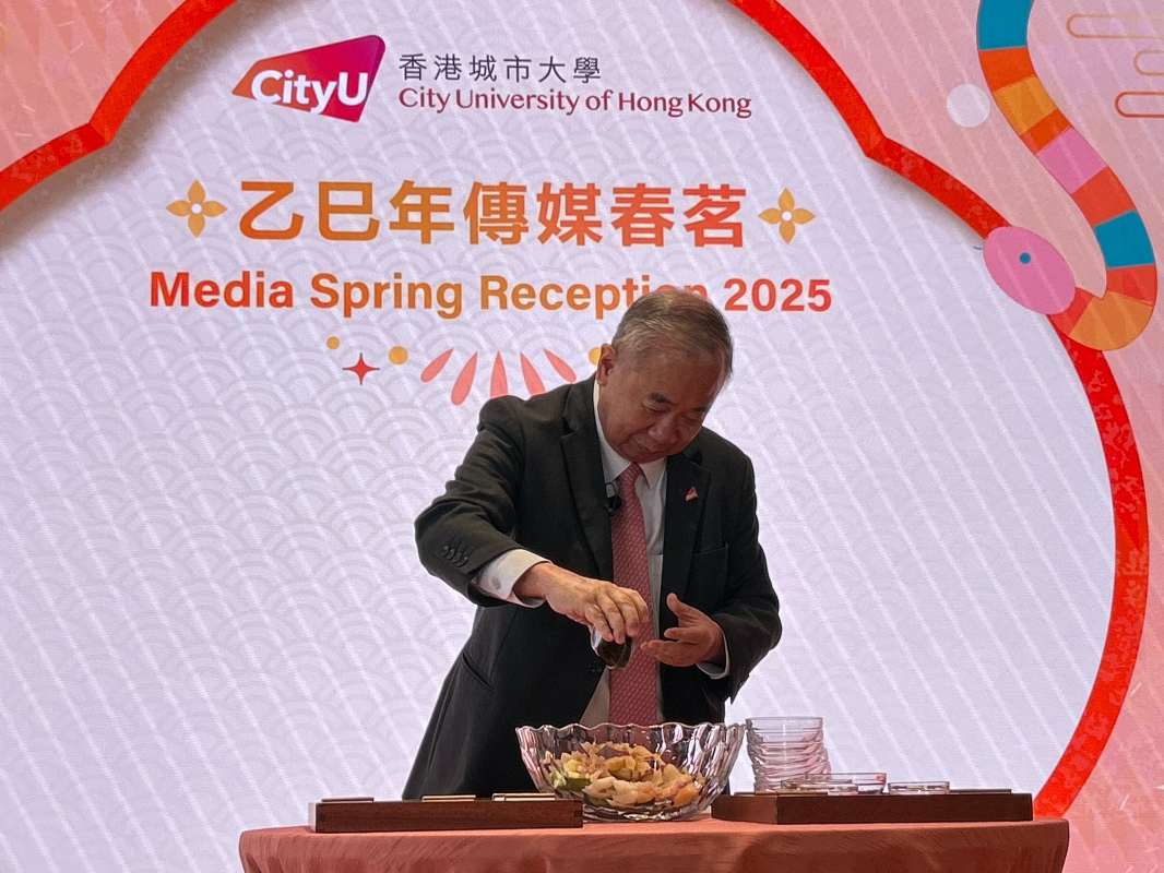 香港新聞網2月13日電 香港城市大學13日舉行乙巳年傳媒春茗,城大校長梅彦昌親身示範做新加坡特色沙拉“羅惹”(Rojak),又與城大多位教授組成“Cityuhk Beatles”,演唱多首名曲。