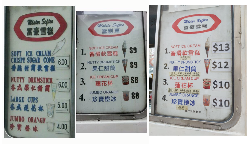 富豪雪糕車數十年來始終如一,儘售賣四款產品,圖為不同年代的價目表(最右為記者攝於2024年)。 基於政府的衛生條例,富豪雪糕車的產品多年來始終如一,僅售賣四種不同雪糕:香滑軟雪糕、果仁甜筒、蓮花杯和珍寶橙冰。儘管選擇不多,但這份堅持卻讓雪糕車成為香港人心中不可替代的經典。軟雪糕是富豪雪糕車的招牌產品,雪糕大小嚴格規定為兩圈半,使用美國奶粉並加入牛油,口感滑爽,拿在手中頗有分量。 雪糕車的音樂也是其標誌之一。每當《藍色多瑙河》的旋律響起,香港人便知道雪糕車就在附近。這首音樂不僅是雪糕車的招牌,也成為了香港街頭文化的一部分。無論是在尖沙咀、旺角還是中環,雪糕車的音樂總能喚起人們的童年回憶。有市民打趣道“這架車很神奇的,永遠都是你聽到富豪雪糕的音樂,但找不到它的雪糕車”,“富豪雪糕絕對是香港人十大回憶之一。” 富豪雪糕車與港人的情感連結 對於許多香港人來說,富豪雪糕車不僅是一輛賣雪糕的車,更是童年美好回憶的象徵。市民林先生向記者憶述:“那時候一聽到雪糕車的音樂,就會立刻湊零錢和朋友跑去買雪糕。”市民劉小姐則向記者分享了一則“趣聞”:“我朋友的媽媽不讓小孩子多吃甜食,在我朋友小的時候跟她說,當這架車有音樂就是雪糕賣完了,等她長大才發現媽媽‘騙’了她。” 這種簡單的快樂,成為了許多香港人共同的記憶。