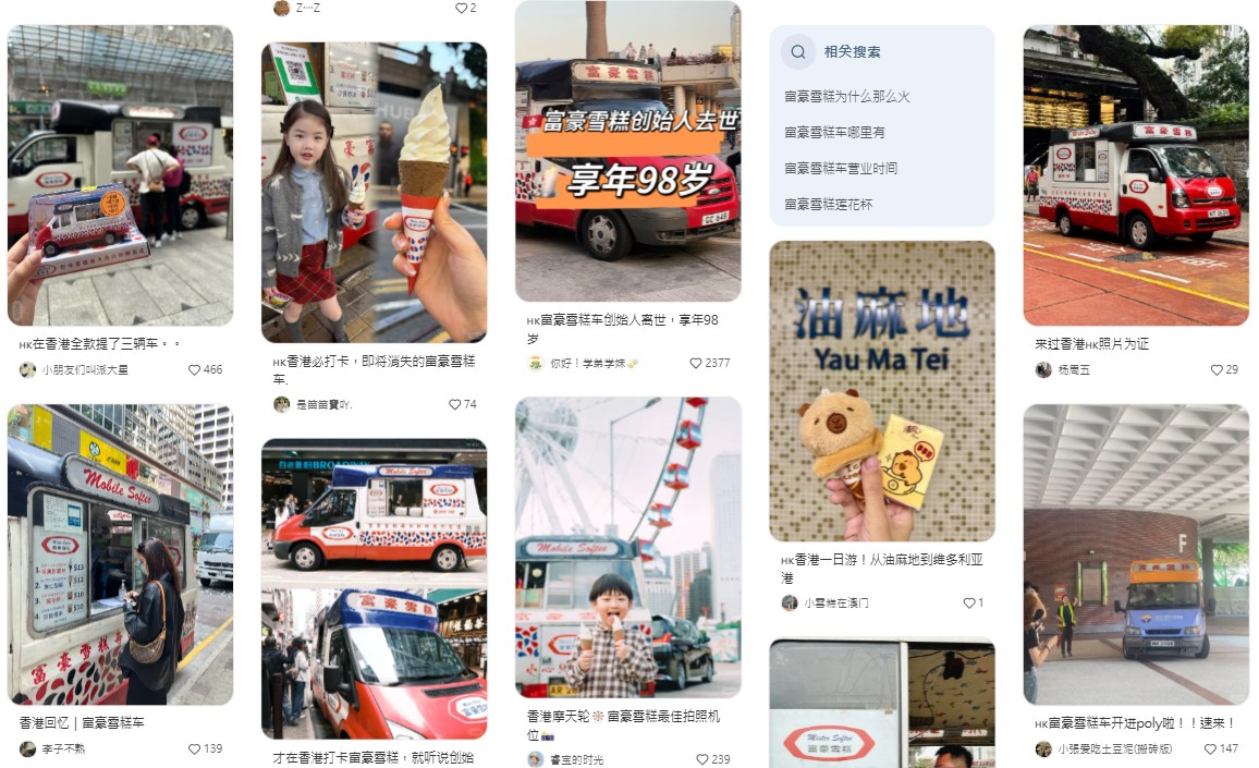 富豪雪糕車成為近年旅客來港的打卡熱點。(圖源:小紅書) 近年來,富豪雪糕車更在小紅書、微博、Instagram等社交媒體的帶動下,成為旅客來港的打卡熱點。來自北京的王先生一家三口,特意在富豪雪糕車前合影留念。王先生回憶道,2019年與太太來香港拍攝婚紗照時,曾在雪糕車前隨手拍了一張照片,如今女兒已經兩歲,他們再次來到雪糕車前,希望將這份甜蜜的回憶傳承下去。 其實,富豪雪糕車未來也面臨著挑戰。香港餐飲聯業協會會長黃家和向記者表示,富豪雪糕車經過多年沉澱,已成為香港重要的文化符號之一。他建議政府放寬對流動餐車的限制,增添香港旅遊特色,讓這類流動餐車能夠繼續為城市增添色彩。 近年來,富豪雪糕車的營運模式也變得更加多元化。除了在街頭售賣雪糕外,雪糕車還與其他機構合作舉辦宣傳活動,甚至提供蜜瓜、朱古力、芒果等“隱藏口味”的雪糕,為市民和旅客帶來更多驚喜。