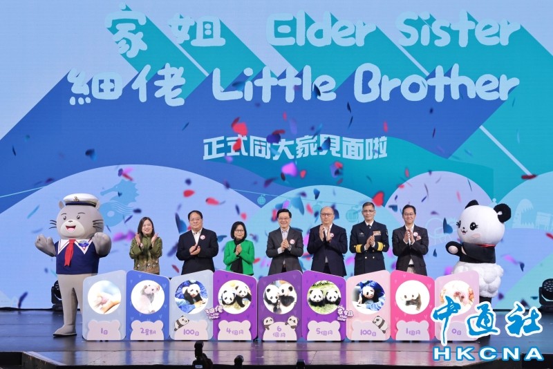 香港特區行政長官李家超等政府官員,以及各界嘉賓2月15日出席大熊貓龍鳳胎亮相儀式活動,共同慶祝這一時刻。香港中通社圖 據了解,這對龍鳳胎大熊貓於2024年8月15日出生,剛出生時,兩隻大熊貓寶寶非常脆弱,需要時間穩定,經過半年時間的精心呵護和餵養,它們的體重從100多克長到約11公斤,體格變得健壯,性格活潑好動,能獨立攀爬、奔跑,展露了“港產”大熊貓的獨特活力。香港市民親切的稱呼雌性幼崽為“家姐”,雄性的則是“細佬”,意思是熊貓弟弟。