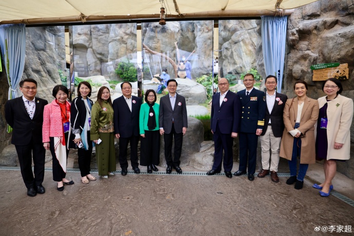 香港新聞網2月15日電 香港特區行政長官李家超15日表示,和太太今日很高興到海洋公園出席大熊貓龍鳳胎寶寶亮相儀式,慶賀其半歲生日。 去年是祖國成立七十五周年,“家姐”“細佬”在這一年出生,成為首對在香港出生的大熊貓,意義非凡。我和太太到“大熊貓之旅”館區探望一對寶寶,看見“家姐”“細佬”十分精靈可愛,活潑好動。