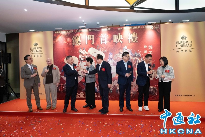 首映禮由東方影業、洲立影片、銀都機構及英皇電影四大公司聯合舉辦,影片於2月22日起在港澳地區全面上映。 香港中通社圖片 根據中國神話故事改編的動畫電影《哪吒2》自1月29日上映以來,累計票房突破125億元人民幣,超過《頭腦特工隊2》,位居全球動畫電影票房榜之冠。 國家電影局常務副局長毛羽、中央政府駐澳聯絡辦宣文部部長萬速成、中央廣播電視總台亞太總站站長曹毅、澳門特區政府教育及青年發展局教育資源廳廳長鄧偉強、澳門廣播電視股份有限公司執行委員會主席羅崇雯、英皇電影營運總監邱漢雄等出席首映禮。(完) 【編輯:紀東】