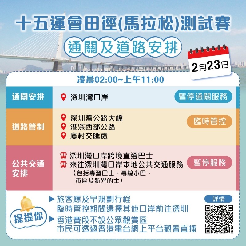 全運會馬拉松測試賽順利結束 深圳灣口岸11時恢復通關分享到: