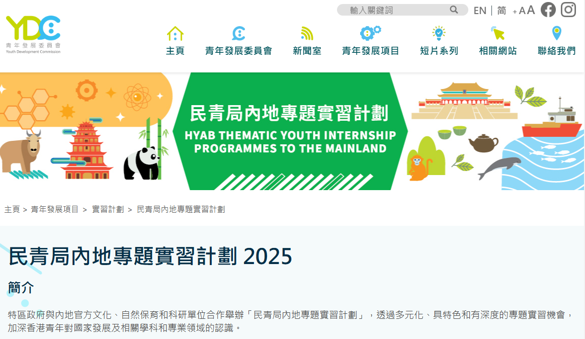 (一)與北京故宮博物院合辦的“港澳青年故宮實習計劃”; (二)與大熊貓國家公園四川省管理局合辦的“大熊貓國家公園臥龍片區青年實習計劃”; (三)與中國科學院合辦的“中國科學院青年實習計劃”; (四)與敦煌研究院合辦的“敦煌青年實習計劃”; (五)與青島嶗山國家實驗室合辦的“山東青島海洋科學青年實習計劃”;及 (六)與武夷山國家公園管理局合辦的“武夷山生物多樣性保育青年實習計劃”。 實習項目將於今年6月至8月期間展開,為期3至6個星期,合共提供超過110個專題實習名額,涵蓋文物保育、科研技術、生態及環境保育等範疇。參加者透過實習工作深入了解和參與國家文化、自然保育和科研單位的工作,並在專家的指導下接受培訓和進行項目研究,從中獲得獨特的工作經驗。 申請人須為18至30歲,(i)持有香港永久性居民身份證的全日制專上學生(包括副學位、學士學位或研究院課程);或(ii)持有香港居民身份證的本地全日制專上學生(包括副學位、學士學位或研究院課程)。除實習工作外,合辦機構亦會為參加者提供培訓、實地考察及其他文化交流活動,親身體驗國家不同領域的發展成果。 新一輪計劃的詳情已上載於青年發展委員會網頁(www.ydc.gov.hk/tyip)。 (完) 【編輯:譚暢】