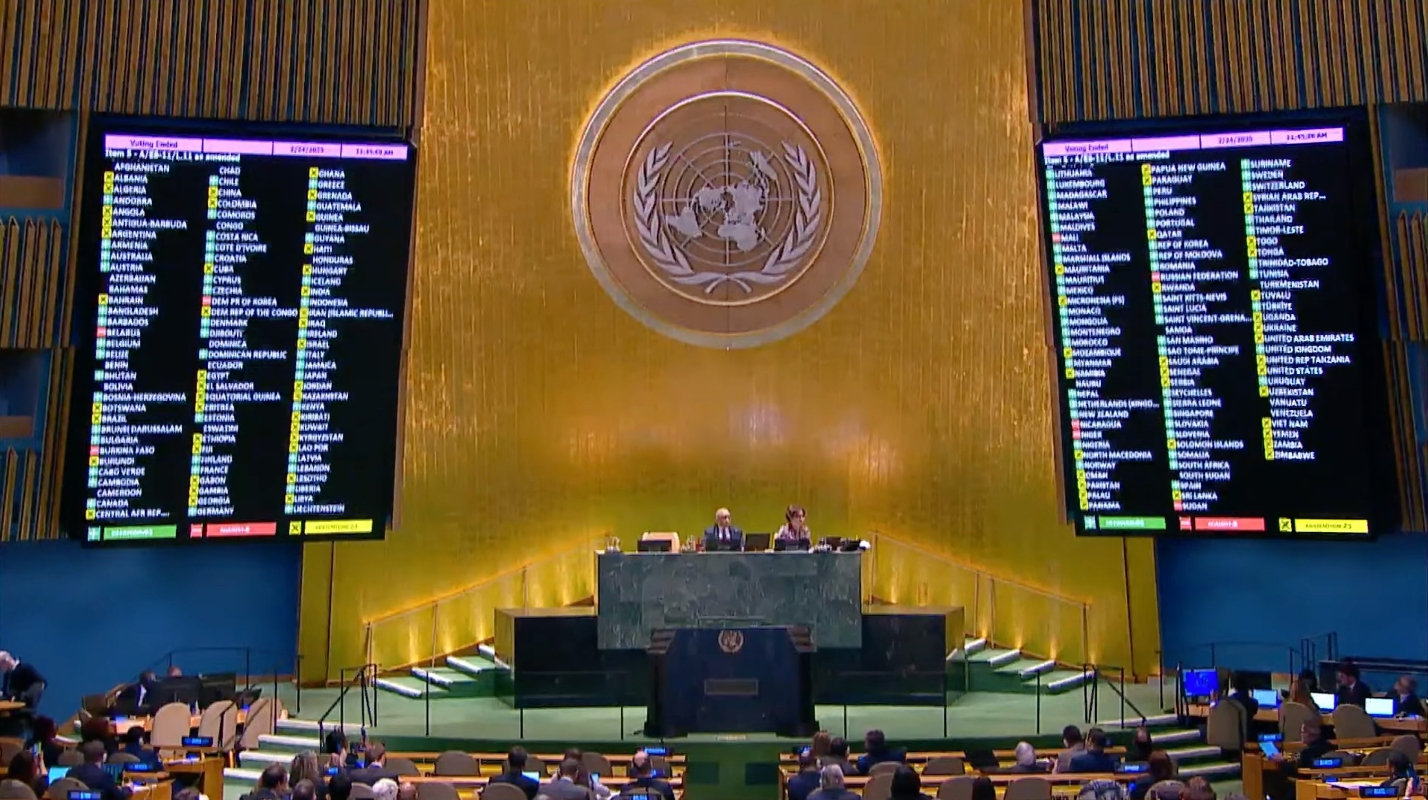聯合國大會24日先後投票表決兩項決議草案。其中一份是由烏克蘭提出、獲得歐洲支持的草案,內容涉及譴責俄羅斯的“侵略行為”,要求俄羅斯立即撤軍,并重申對烏克蘭主權和領土完整的支持,儘管決議以93票讚成獲得通過,但美國和俄羅斯、白俄羅斯等國一起投了反對票。