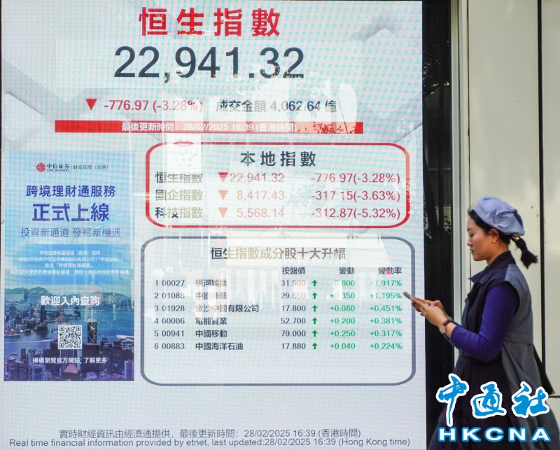 香港恒生指數跌776點 報22941點分享到:
