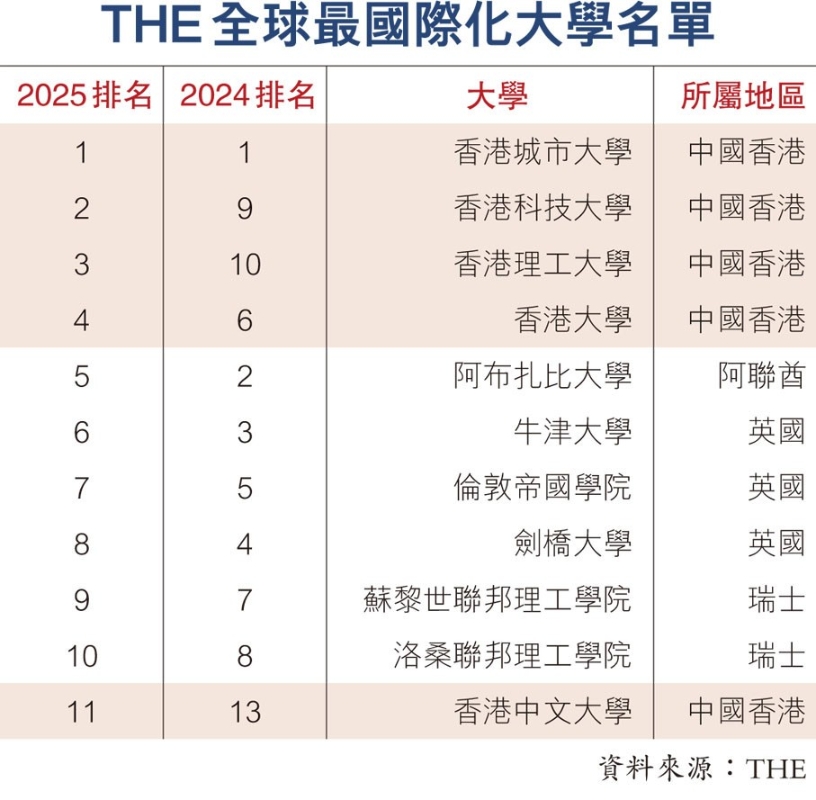 香港包攬全球最國際化大學榜前四 城大蟬聯第一分享到: