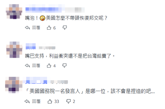 美國為南非“台北商務辦事處”撐腰?台灣網友:嘴炮而已!香港新聞網3月20日電(編輯 丘志彬)台灣民進黨當局正為南非“台北商務辦事處”更名事件跳腳之際,台媒今日(3月20日)報道稱“美國國務院對此事表示關切”,一副“挾美自重”的姿態。然而,台灣島內輿論并不樂觀看好,認為美國“只會出一張嘴”、台當局所有的抗議“蒼白無力”。 據台灣“中央社”報道,“美國在台協會”(AIT)昨日表示,對更名事件感到失望,稱“美國將持續支持台灣”等。報道還稱,昨日下午,美國國務院一名發言人表示對此表示關切,美國鼓勵各國擴大與台灣接觸,還炒作所謂的“中國威脅”,指中國大陸試圖將台灣“孤立”於國際社會。 對此,台灣網友都不買賬,認為美國“只出一張嘴”,“嘴炮!美國怎麼不帶頭恢復‘邦交’”,“美國只會演表面”,還指出美國“利益衝突,還不是把台灣給賣了”,甚至懷疑該報道的真實性。