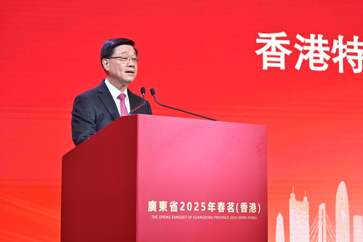 李家超今日(3月20日)在廣東省2025年春茗(香港)致辭。 圖源:政府新聞網 第二,以開放新合作為橋,連繫灣區內外經脈。《〈內地與香港關於建立更緊密經貿關係的安排〉(CEPA)服務貿易協議》的新修訂協議在本月實施。李家超說,協議支持在大灣區不同城市註冊的港資企業,選擇“港資港法”或“港資港仲裁”,更在大部分服務領域放寬年期規定,讓更多世界各地的企業和人才,可以利用CEPA優惠政策立足香港,開拓內地市場的無限機遇。 第三,以人文新紐帶為媒,綻放一流灣區風華。李家超說,今年底將舉行的第十五屆全國運動會,及全國第十二屆殘疾人運動會暨第九屆特殊奧林匹克運動會,是首次由廣東、澳門和香港一同承辦,是三地實現共築休閒灣區、健康灣區的重要合作項目,更為三地人文交流構建新紐帶。 李家超有信心,三地政府的凝心聚力,能為國家舉辦一場簡約、安全、精彩的高水平運動會。(完) 【編輯:李濼】
