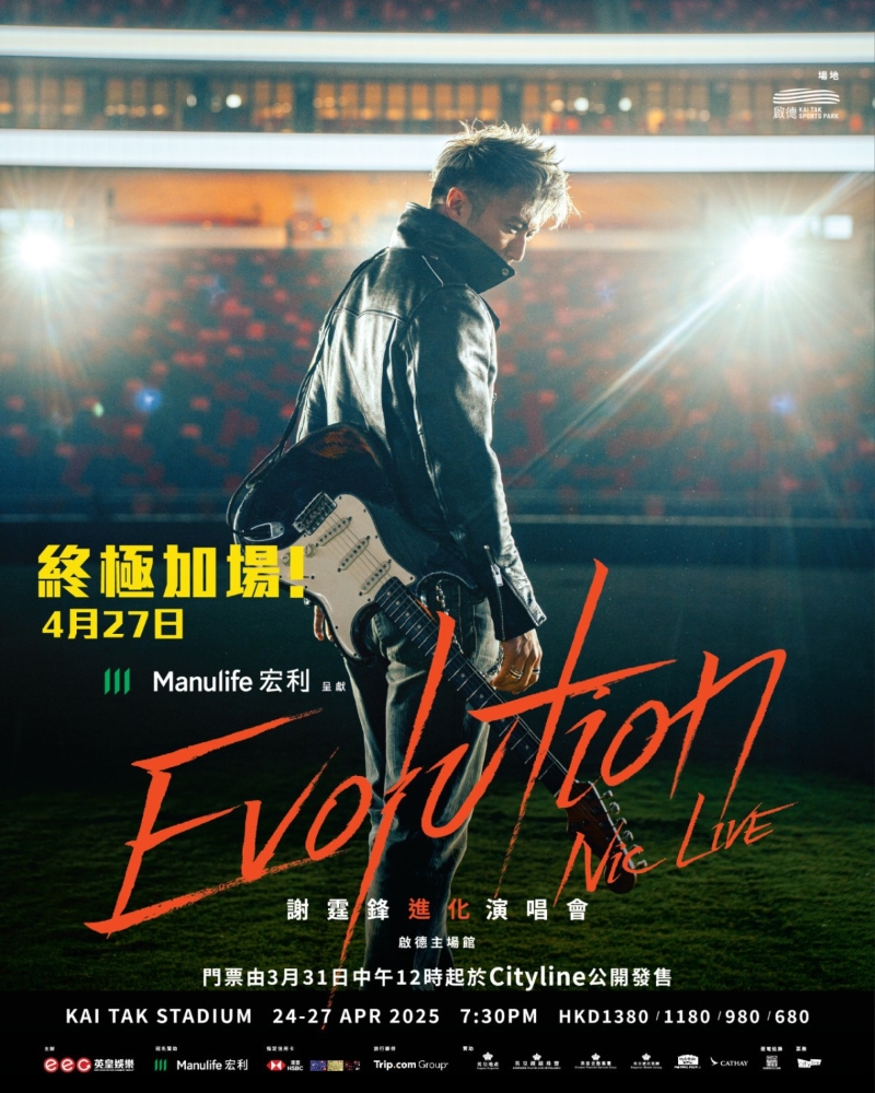 香港新聞網3月24日電 香港男歌手、演員謝霆鋒將於今年4月,在香港啟德體育園主場館舉行“Evolution Nic Live謝霆鋒進化演唱會”。早前官宣的三場演唱會門票光速售罄,粉絲紛紛“求加場”。英皇娛樂24日宣布,將於4月27日(星期日)加開終極場,合共在啟德連開4場演唱會,門票由3月31日中午12時起,於Cityline公開發售。