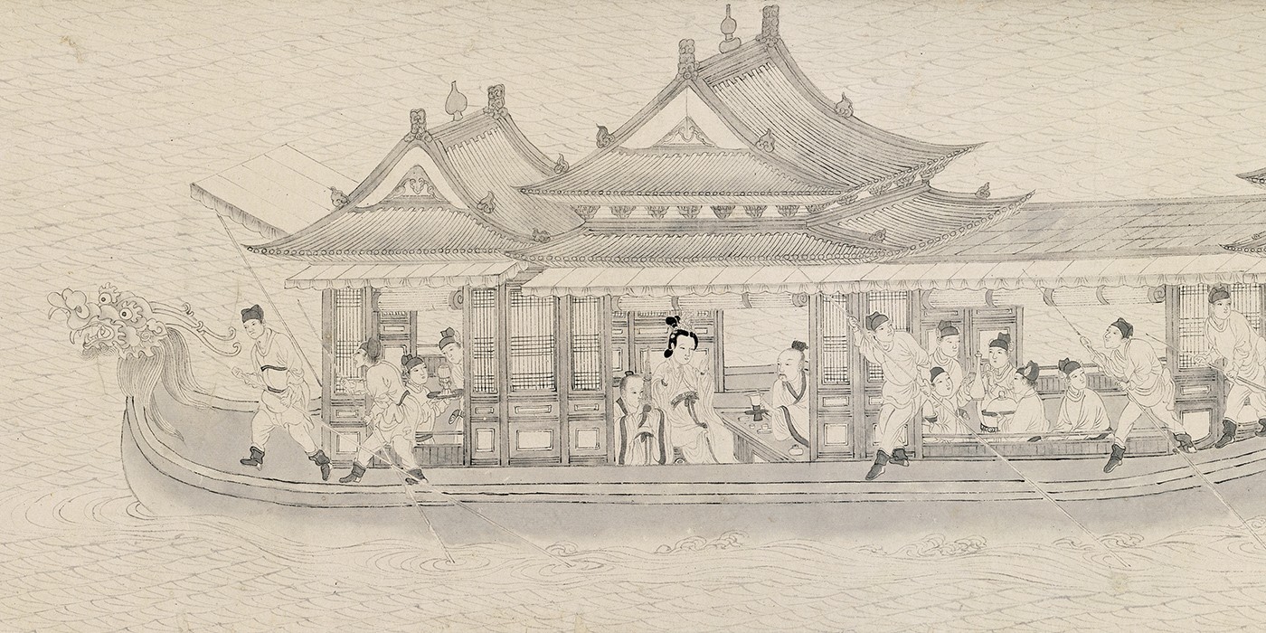 上海博物館藏《漢宮春曉圖卷》局部。(圖源:中大文物館) “思潮爭鳴”展區中,有來自上海博物館,足足8米長的《漢宮春曉圖卷》。該展品由明中期畫家尤求應王世貞之請,根據當時書畫家文徵明所撰的《趙飛燕外傳》,用墨筆白描了一卷仿古的《漢宮春曉圖》。一說該作藉漢成帝史故,實則抒發明代文人處境。