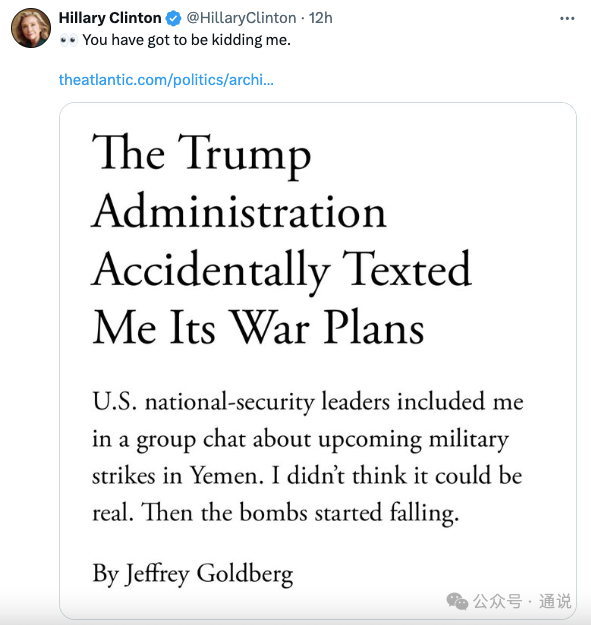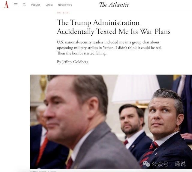 通說:群聊拉錯人洩密?美國安高層這簍子震驚了全世界這件事情,可能大多數人第一次聽的時候都不相信。美國絕密的作戰計劃,竟是通過這樣的一個方式洩漏。不僅讓全球網友大跌眼鏡,連美國總統特朗普本人也懵圈。 事情要從半個月前說起。3月11號,《大西洋》月刊總編輯傑弗里·戈德堡(Jeffrey Goldberg)聲稱自己突然被一個ID和美國國家安全顧問沃爾茲同名的人拉進了一個名叫“胡塞武裝小群”的群組裡。群組成員十分嚇人,包括美國副總統萬斯、美國國防部長赫格塞斯、美國國務卿魯比奧、中情局長拉特克利夫等。這個美國總統特朗普的國家安全團隊在群裡熱火朝天地聊起了襲擊也門胡塞武裝的作戰計劃。