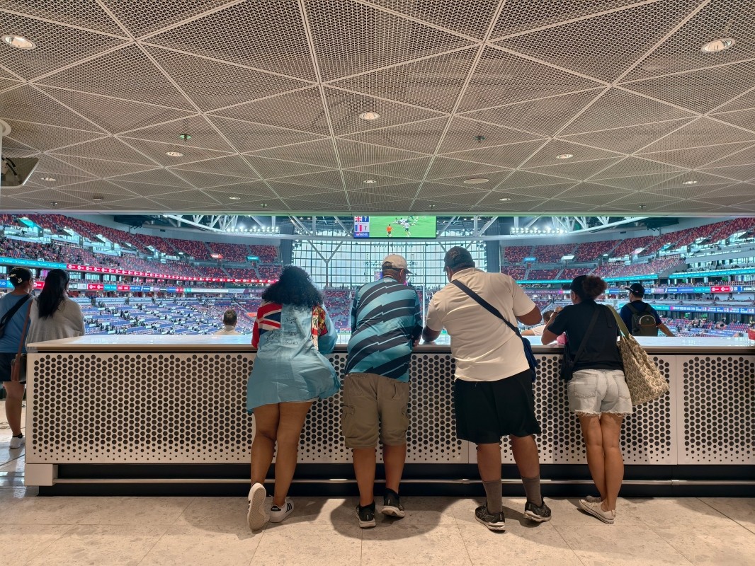 香港中通社記者 梁嘉軒攝 香港特區政府文體旅局局長羅淑佩穿上主題球衣到場視察,她表示自己非常期待賽事,雖然上午似乎人不算多,但已經賣了約13萬張門票,相信稍後有更多人入場。 香港28日天氣轉陰,但新啟用的啟德體育園採用可開合的上蓋設計。有第二次來香港看球賽的斐濟旅客表示,她原本做好了淋雨看比賽的準備,也準備扇子防止太熱,但場地不僅有蓋,且空調十分強勁,非常舒適。 不少觀眾都“盛裝出席”,有裝扮成古希臘神話故事人物的,也有打扮成不同動物的,贊助活動的航空公司更派出飛機形人偶與現場觀眾互動,氛圍非常熱烈。 香港七人欖球賽除了球賽本身,場內歡樂氛圍是其成為世界盛事的重要元素,舞蹈、音樂、啤酒,讓能容納5萬人的場館搖身一變成大型體育派對。不少觀眾捧著以升計算的啤酒壺開始暢飲,有觀眾表示小食檔價格公道。記者從現場可見,一個售價港幣98元的漢堡,約有一隻手掌大。(完) 【編輯:劉春】