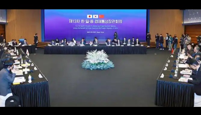 時隔5年半,中日韓重啟經貿部長會議香港新聞網3月31日電 時隔5年半,中日韓重啟經貿部長會議。據新華社報道,3月30日,第13次中日韓經貿部長會議在韓國首爾舉行。中國商務部部長王文濤與韓國產業通商資源部長官安德根、日本經濟產業大臣武藤容治共同主持會議。會議圍繞落實第九次中日韓領導人會議經貿領域重要共識,就加強貿易投資合作、區域及多邊合作等深入交換意見,達成廣泛共識。