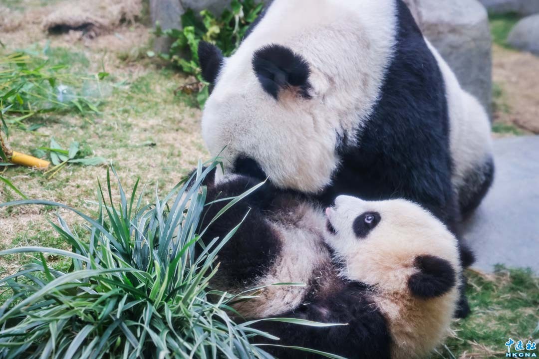 香港海洋公園將29日起至6月1日期間舉辦“親親動物月2025”,有十多項特別活動讓入場人士參加,包括發掘6隻大熊貓的日常,認識樹懶、金剛鸚鵡和禿鷲等動物,還有一系列大熊貓主題工作坊等。圖為“盈盈”、“樂樂”(香港中通社記者 謝光磊攝)