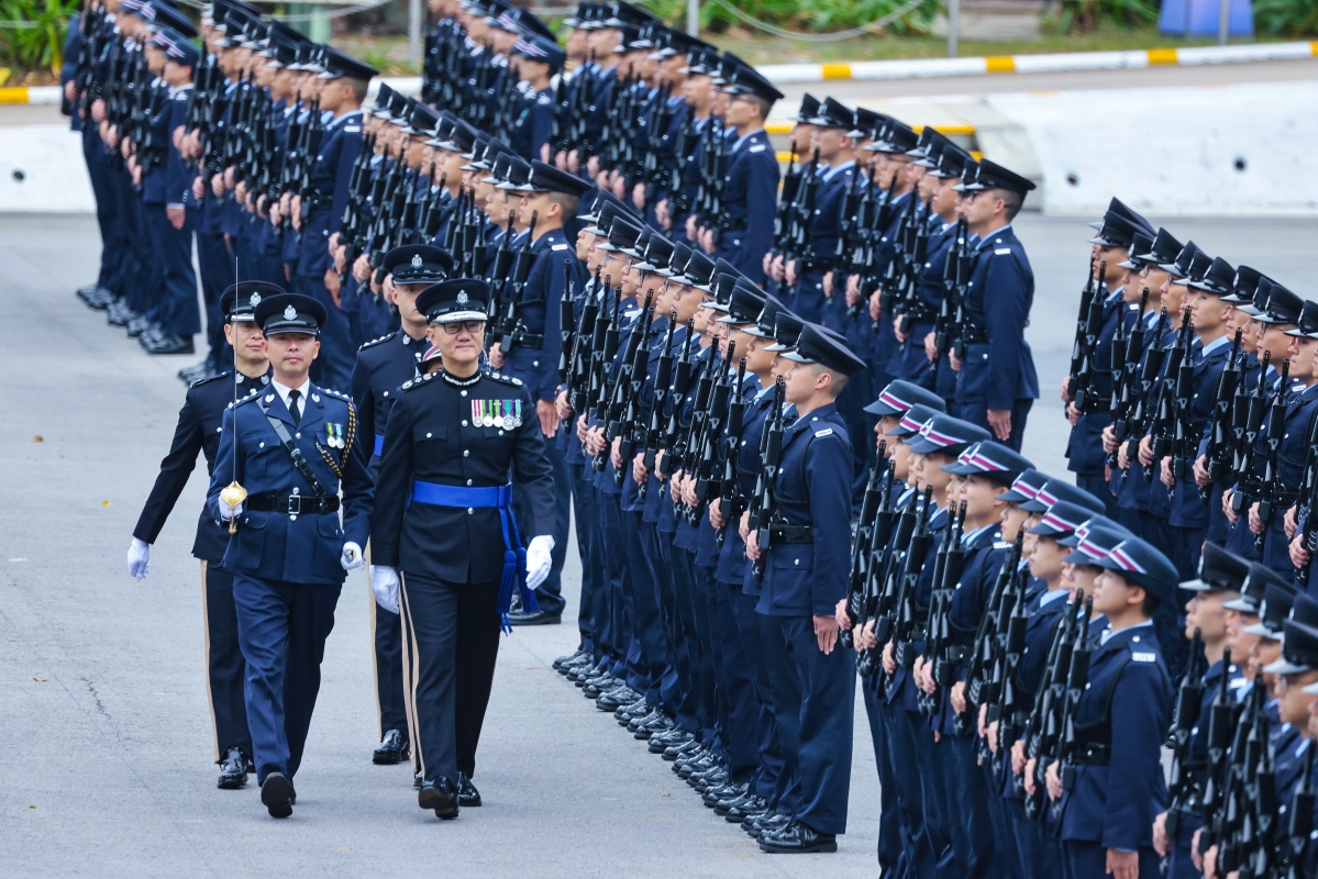 3月29日,香港警察學院舉行結業會操,警務處處長蕭澤頤在典禮中檢閱畢業的見習督察和學警。(香港中通社記者 謝光磊攝)