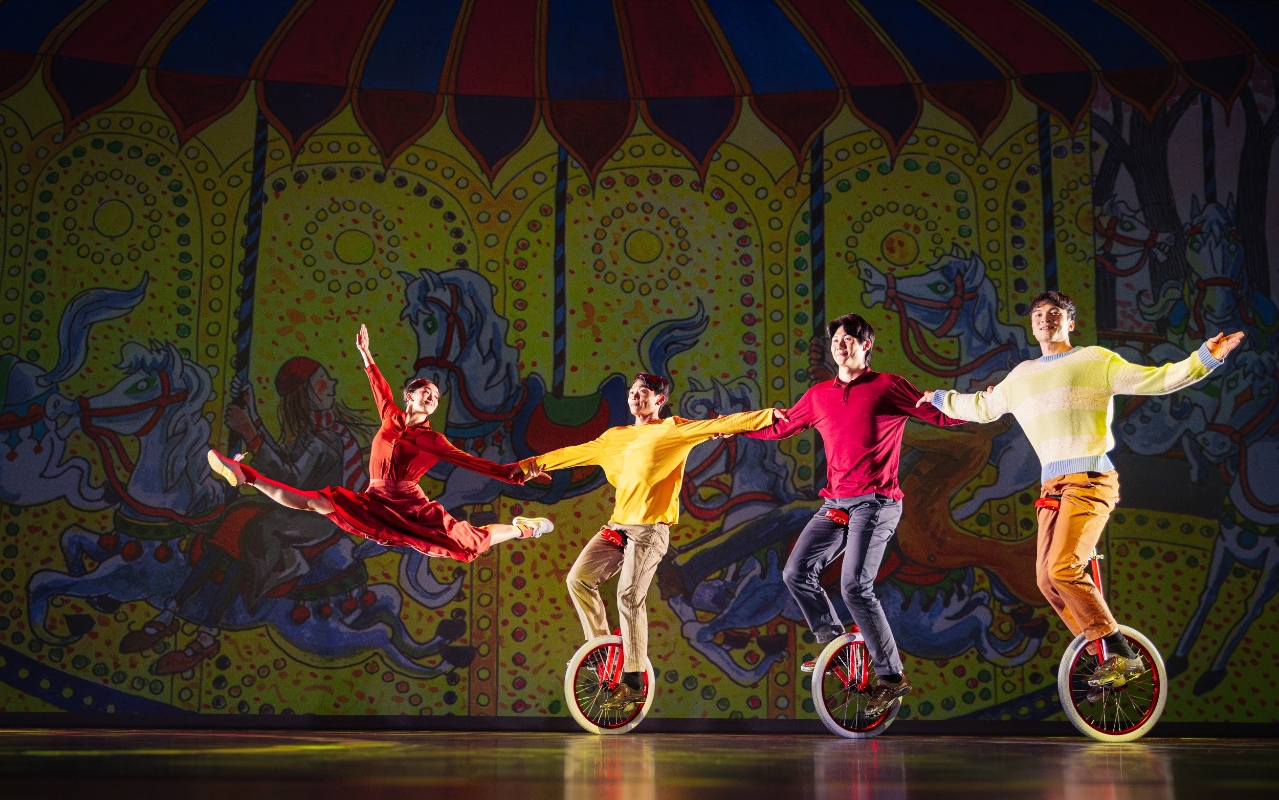 FOCASA幾米馬戲樂園 3月28日在台南水交社文化園區大草原正式開幕,馬戲團15周年大作《幾米男孩的100次勇敢》晚間也盛大登場!為演出搭建的 7層樓高的馬戲帳篷也首度曝光。這座全台唯一帳篷連日來已吸引眾多過路民眾拍照打卡,今終於開箱篷內奇幻華麗風光,見證台灣馬戲藝術嶄新里程碑。圖為《幾米男孩的100次勇敢》特技表演。 香港中通社圖片