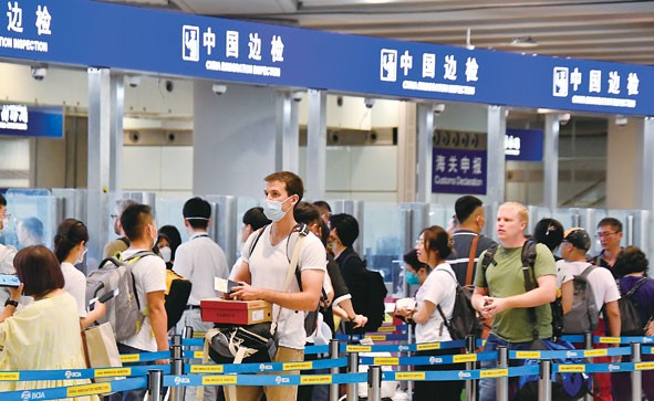 資料圖:旅客從首都國際機場邊防檢查站出境。新華社圖片 北京首都、上海浦東、廣州白雲、杭州蕭山、成都天府等大型國際機場口岸出入境客流小幅增長,預計日均出入境人員分別為3.9萬、8.1萬、4.8萬、1.2萬、1.6萬人次。毗鄰港澳陸路口岸旅客流量快速增長,返鄉祭祖的港澳台居民、海外僑胞將明顯增多。其中,珠海拱北、港珠澳大橋、青茂、橫琴口岸日均出入境人員預計將達到36.7萬、12.3萬、11.4萬、9.5萬人次,深圳羅湖、福田、深圳灣、蓮塘、廣深港高鐵西九龍站口岸預計將達到24.9萬、22.8萬、16萬、11.2萬、10.5萬人次。 日前,中國國家移民管理局就做好清明節假期口岸邊防檢查工作作出專門部署,要求全國邊檢機關加強出入境流量和口岸運行情況監測,及時發佈本口岸出入境客流信息,為出入境人員行程安排提供參考;科學組織勤務,開足查驗通道,特別是毗鄰港澳陸路口岸、與台灣直航口岸,加強提示引導,為返鄉祭祖的港澳台居民、海外僑胞提供入出境通關便利;密切與口岸聯檢單位和地方相關部門協同聯動,穩妥做好高峰期客流疏導和交通配套綜合保障,共同確保口岸通關安全高效順暢。(完) 【編輯:彭玉婷】