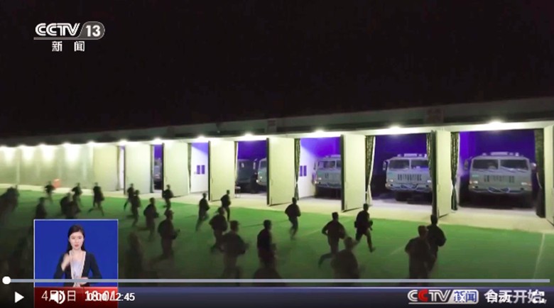 凌晨時分,受領打擊任務的火箭軍某部常規導彈分隊緊急出動,在夜暗環境下微光駕駛,多點多向機動,向預設陣地開進。