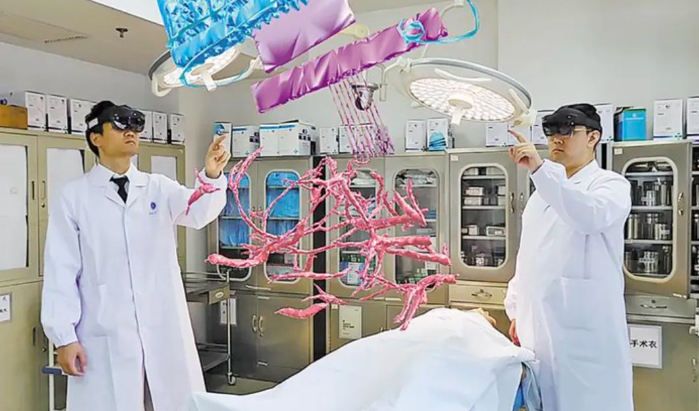 腦部全息投影成像,精準地“懸浮”在眼前。 據快科技報道,華中科技大學同濟醫學院附屬協和醫院葉哲偉教授、周弘博士團隊與武漢衷華腦機融合科技發展有限公司聯合發佈了這項成果。發佈現場,團隊成員戴上MR眼鏡後,實驗大鼠的腦部全息投影成像,精準地“懸浮”在眼前,不同顔色標注的腦組織功能區與紅色血管組織交織,手指懸空輕觸全息影像即可進行數百倍的放大呈現特定腦區,旋轉、移動圖像,解剖結構關係一目瞭然。