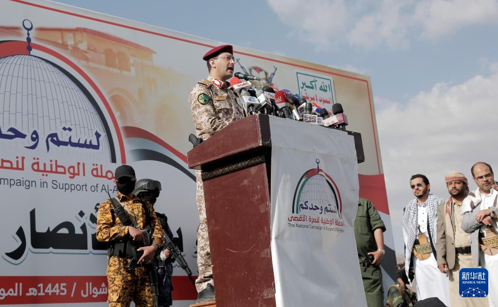 2024年5月3日,也門胡塞武裝發言人葉海亞·薩雷亞在薩那舉行的一個集會上講話。新華社資料圖 胡塞武裝軍事發言人當日發布聲明稱,該武裝在紅海北部對敵方軍艦實施了一次交戰行動,使用了多枚巡航導彈和無人機,打擊目標包括以美國“杜魯門”號航母為首的多艘戰艦。此外,胡塞武裝還打擊了一艘為“杜魯門”號航母提供補給的美軍補給艦。 據胡塞武裝消息,5日晚間,美軍對也門北部薩達省薩達市西部地區進行了4次空襲。 美國3月15日開始對也門胡塞武裝進行大規模空襲,胡塞武裝隨後對美國航母及其隨行艦隻發動打擊。 “杜魯門”號航母是20世紀90年代美國建造的尼米茲級航空母艦8號艦,目前被部署在紅海海域。(完) 【編輯:馬華】